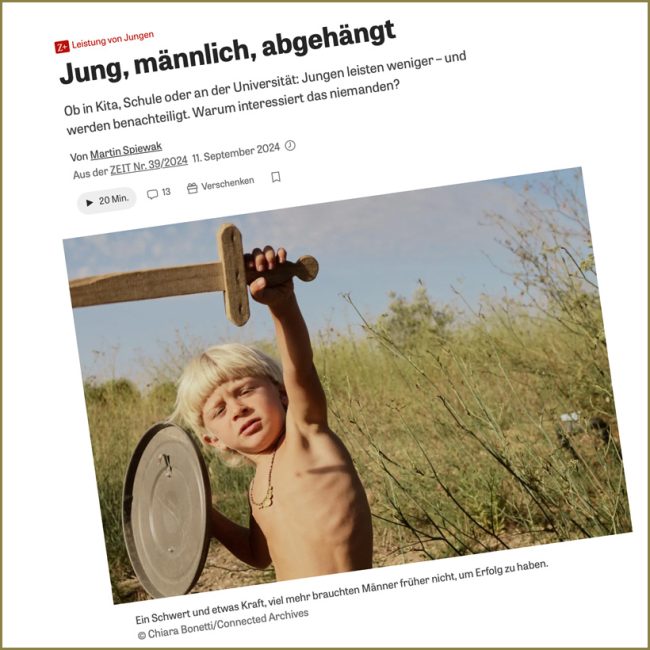 Jungen brauchen Männer, bei denen sie sich abgucken können, wie das geht: ein Mann werden. Wie immer „Mann“ aussieht: Hetero, homo, bi, wild, sanft, ein Macher, ein Denker, cis, trans, non-binär…